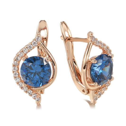 Luxury Oval Geometric Blue Zircon Clip Earrings For Women 585 Rose Gold