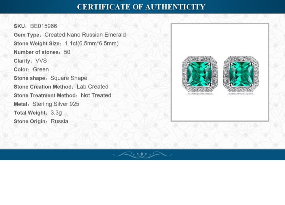 1.1ct Simulated Nano Emerald 925 Sterling Silver Stud Earrings