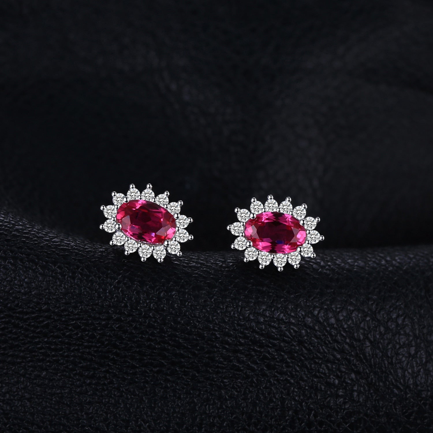 1.2ct Created Ruby 925 Sterling Silver Halo Stud Earrings