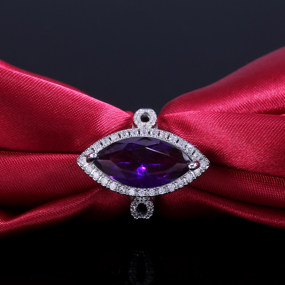 Luxury Brilliant Purple Stone Party Rings Vintage Devil Eye Symbol Micro Paved Cocktail Party Rings For Women Hot Selling