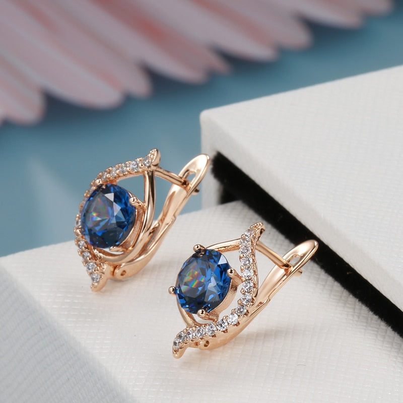Luxury Oval Geometric Blue Zircon Clip Earrings For Women 585 Rose Gold