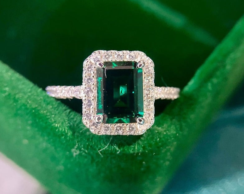 925 Sterling Silver Created Moissanite Emerald Gemstone Rings
